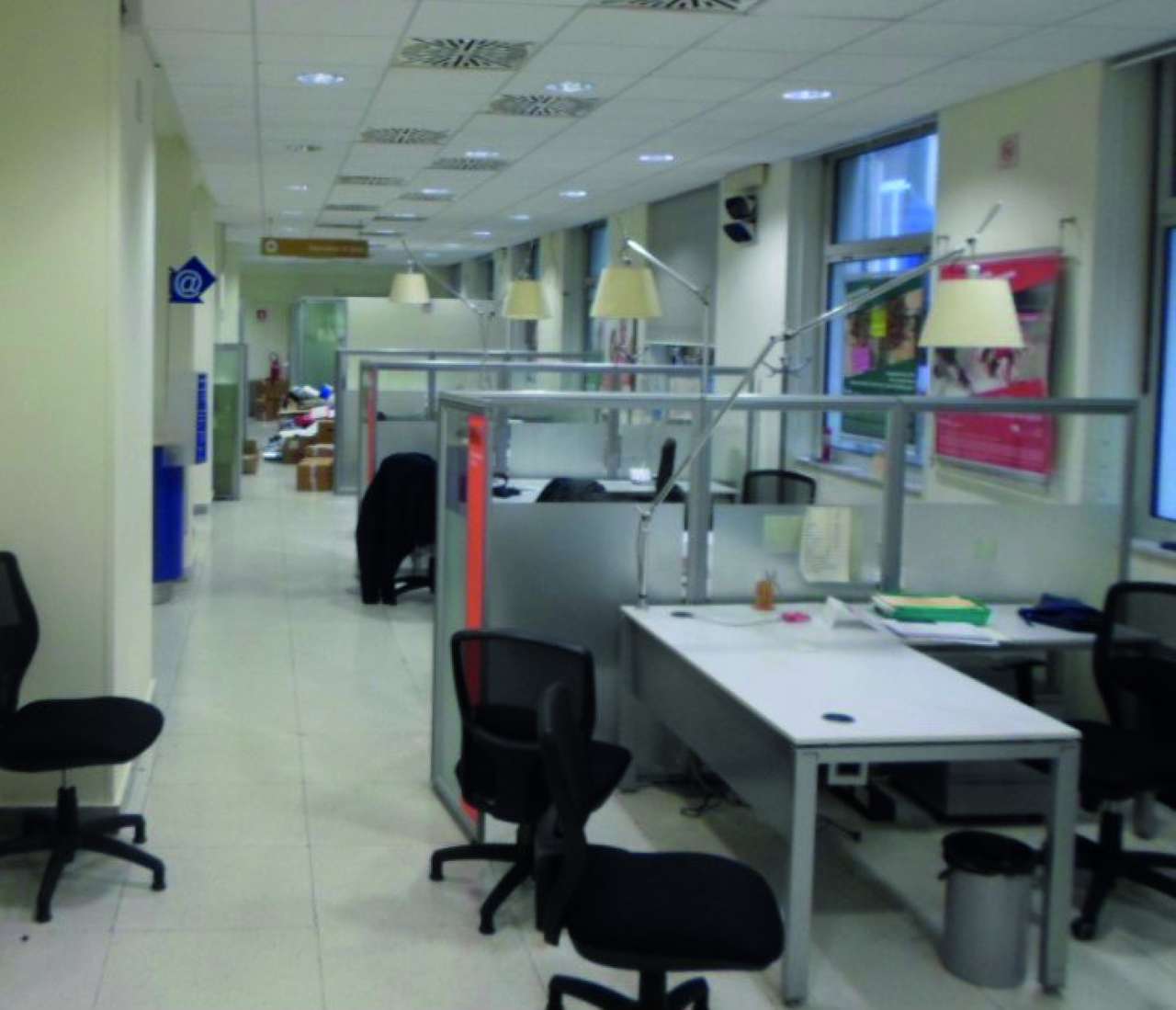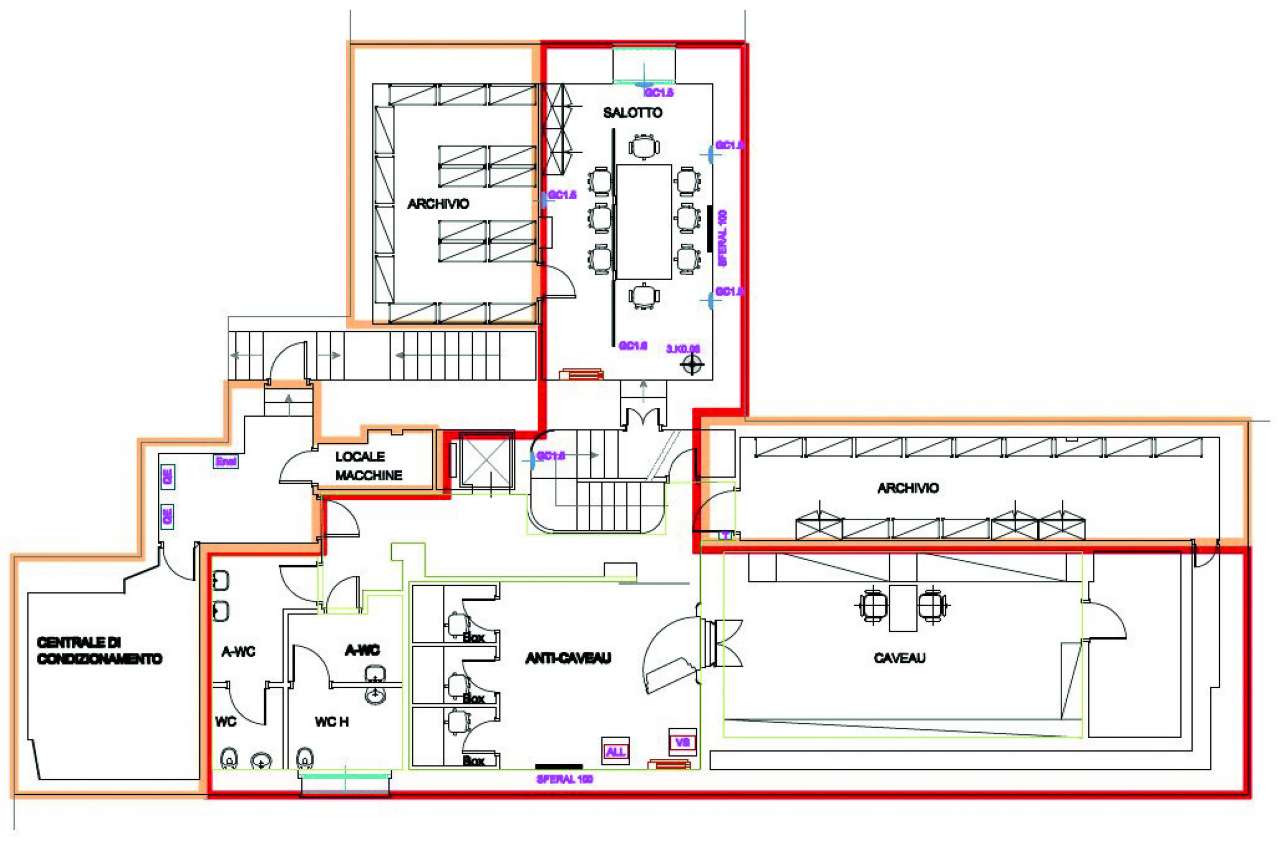 Il locale commerciale al piano terra è quasi interamente strutturato ad open space, con la sola presenza di 4 locali separati da pareti mobili vetrate con telaio in alluminio. Tutto il piano terra è controsoffittato con pannelli quadrati ispezionabili in cartongesso; all'interno del controsoffitto sono allocati i canali di distribuzioni dell’impianto di ventilazione e le parti costituenti l’impianto illuminante. Il piano interrato consta di due livelli, un primo considerabile come un “mezzanino”, perché a quota intermedia tra interrato e piano terra, dove è presente una sala riunioni e un archivio, e un secondo, a quota completamente interrata dove si trovano i locali ex caveau, un archivio, i servizi igienici e dei locali tecnici ospitanti la centrale di condizionamento e il locale tecnico ascensore. Il piano interamente interrato vede la presenza, in quasi tutti i locali, di controsoffittatura in griglie in alluminio ispezionabili. Gli uffici al piano primo oltre ad essere accessibili tramite i già menzionati connettivi verticali interni all'unità, risultano accessibili anche attraverso i connettivi verticali condominiali. Gli uffici sono collegati da un lungo corridoio che serve le diverse stanze di differenti dimensioni, la ex sala corsi, gli archivi ed i servizi igienici. I locali, ad esclusione del corridoio, non appaiono controsoffittati. Il piano terra e primo godono di pavimentazione galleggiante. La pavimentazione del piano interrato è normalmente rivestita da piastrelle di forma quadrata. Gli impianti meccanici di tutti i locali oggetto di stima sono ottimamente funzionanti e in buone condizioni manutentive. L’unità presenta le seguenti finiture: pavimento misto, controsoffitto con incassati corpi illuminanti e bocchette per il riciclo d’aria, serramenti in alluminio.