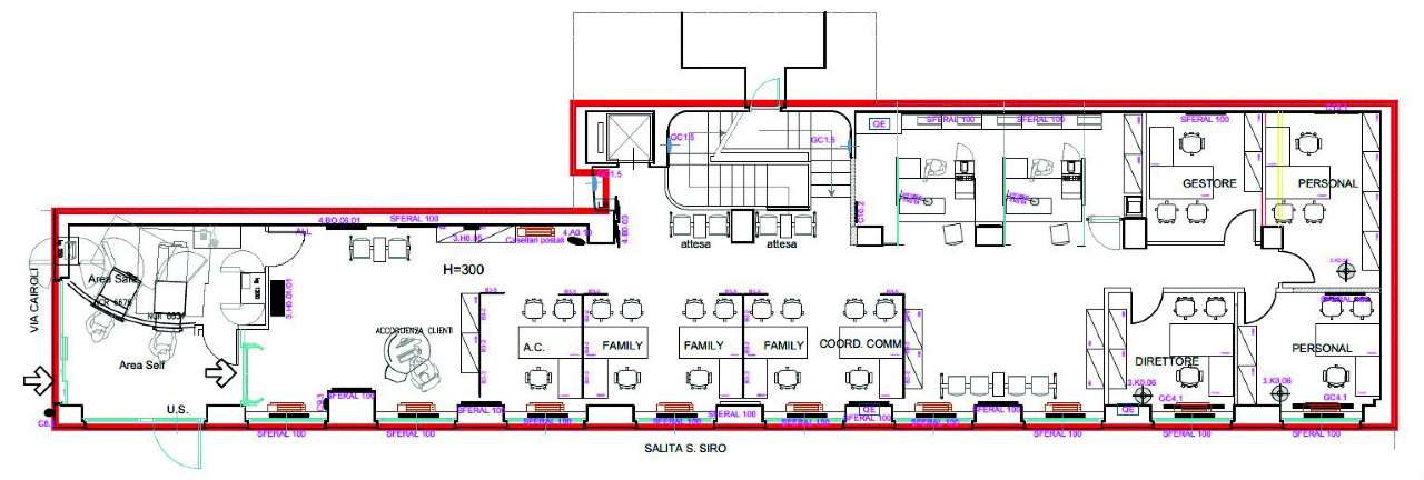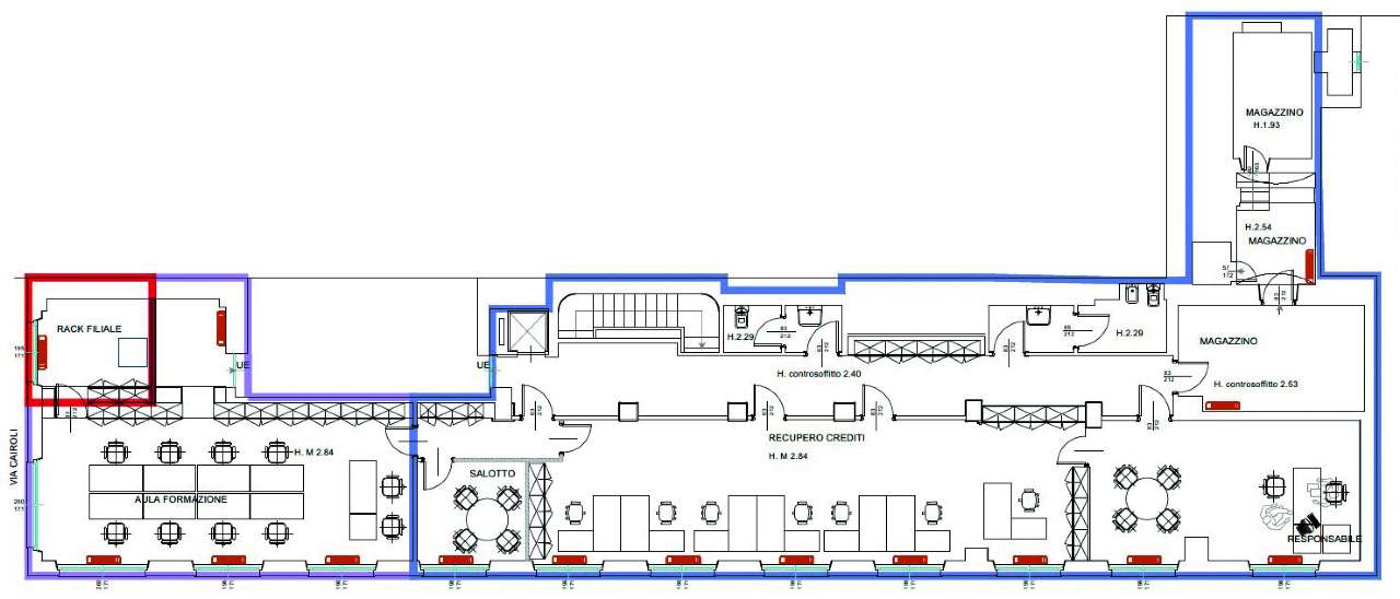 L’edificio ospitante le unità immobiliari è risalente presumibilmente agli ’50/60, si sviluppa su cinque piani fuori terra e un interrato. Il locale commerciale al piano terra è dotato di una vetrina che affaccia su via Cairoli e una su via San Siro, dove in quest’ultima sono presenti ulteriori 9 finestre di grandi dimensioni, ma non al piano strada, data la pendenza che contraddistingue Via San Siro. Il locale commerciale al piano terra è completato da un piano interrato di buone dimensioni e da locali al primo piano prima utilizzati come uffici. I tre piani sono collegati verticalmente sia da una scala che da un ascensore ad uso esclusivo.