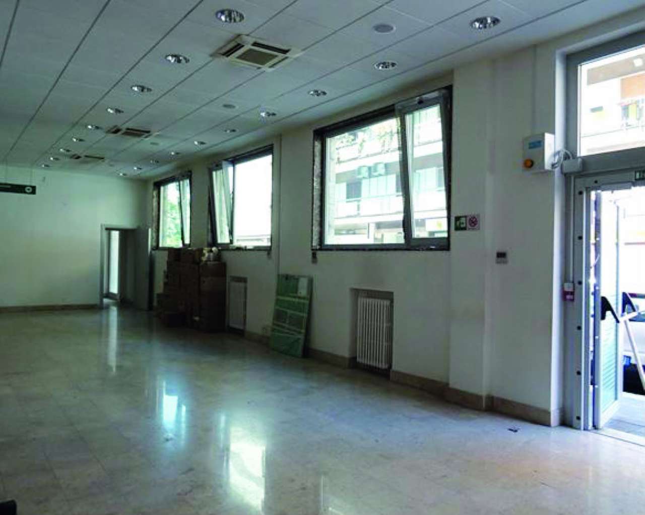 Trattasi di porzione immobiliare facente parte di un fabbricato condominiale di più ampie dimensioni. Detta unità immobiliare è costituita da un locale commerciale (ex filiale bancaria in disuso), sviluppato ai piani terra e interrato e dotato di tre vetrine, di cui una si affaccia sulla via principale (V. le Unità d’Italia) e le rimanenti sulla traversa (Via Pisanelli), oltre a quattro finestre. Le tre vetrine, oltre a donargli una buona visibilità dalla strada, la rendono trasformabile in una o più attività commerciali di vicinato, destinazione che probabilmente era quella originaria. L’immobile non è dotato di parcheggi, garage o posti auto di pertinenza ma la zona è ricca di parcheggi e a soli 100 metri è presente la già citata Caserma Rossani, attualmente Parco Rossani, che consente la sosta temporanea oraria a pagamento, oltre a