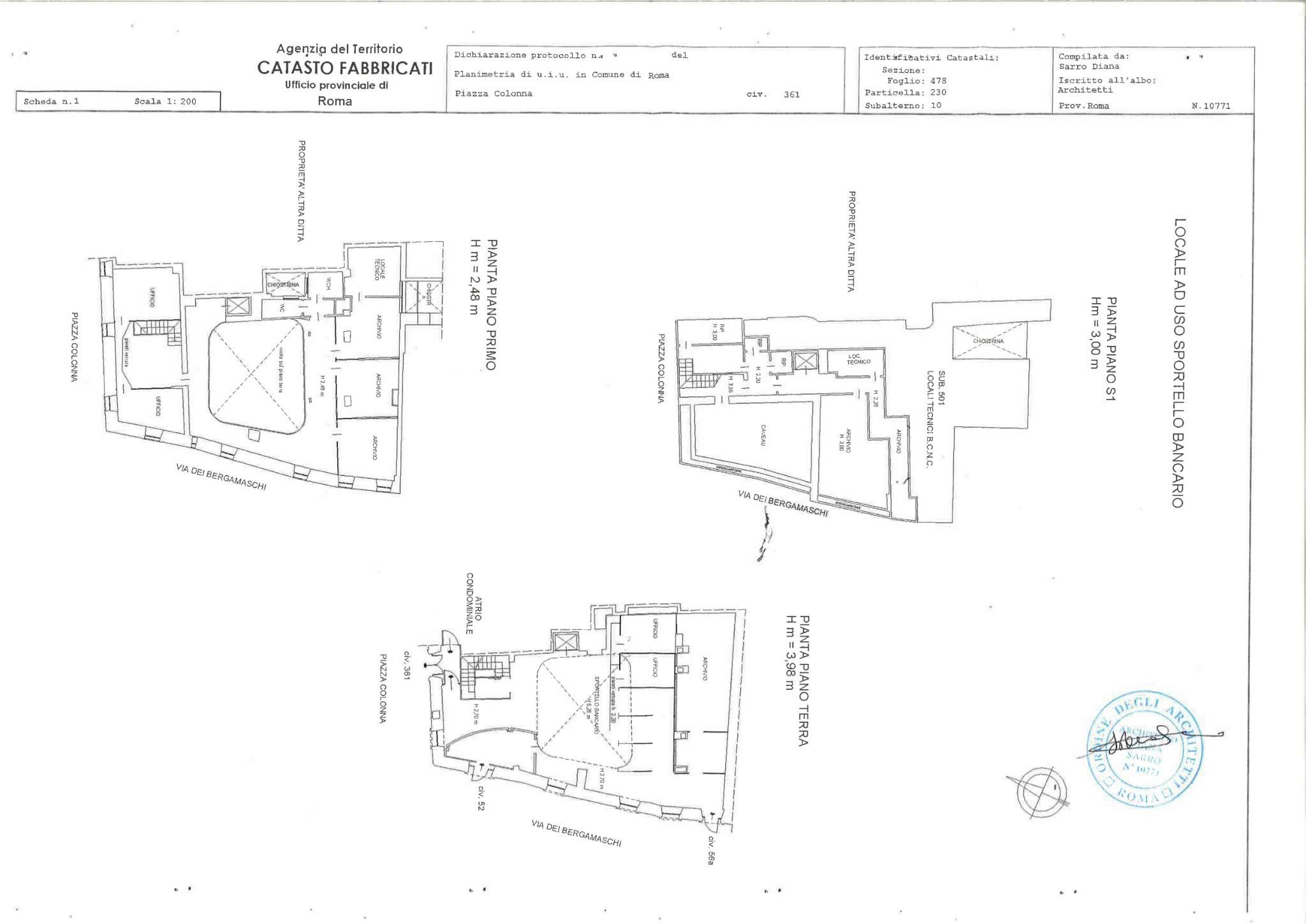 - piano terra: ingressi, sportello bancario, due uffici, archivio e disimpegno;