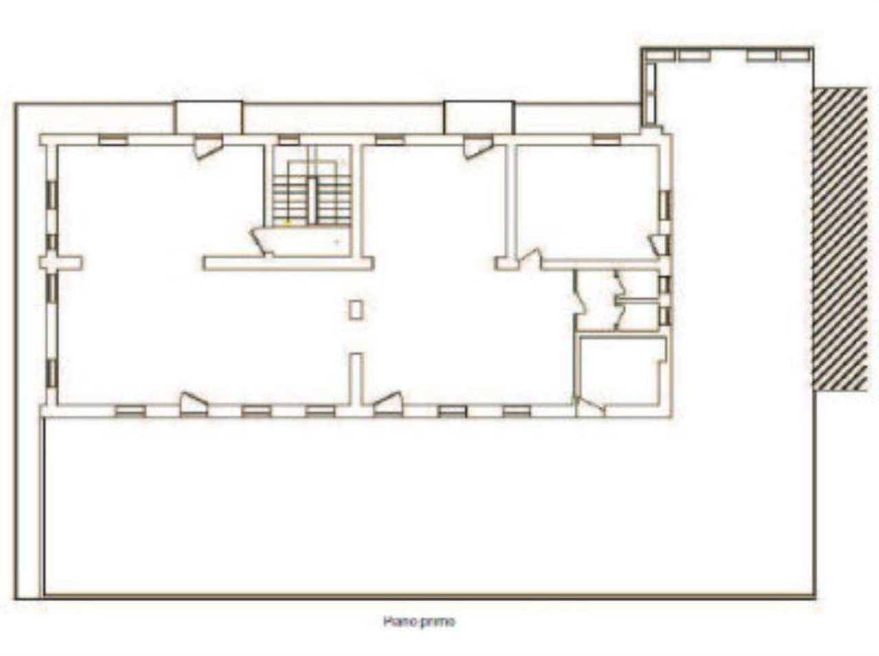 L’ufficio al primo piano è raggiungibile da scala condominiale accessibile da via 28 Aprile ed è formato da un ambiente che occupa la quasi totalità della superficie disponibile e da due locali minori, uno dei quali di servizio, ricavati lungo il lato est del fabbricato. L’unità immobiliare ha in un uso esclusivo la quasi totalità della terrazza di mq. 265 ricavata sulla copertura del piano terra e un ampio magazzino al piano interrato, accessibile dall’esterno dall’area parcheggio antistante l’immobile. Le finiture interne consistono in pavimentazione in linoleum o parquet, soffitti e pareti intonacati al civile, porte in tamburato, serramenti in alluminio con vetrocamera, rivestimento ceramico per il servizio igienico.